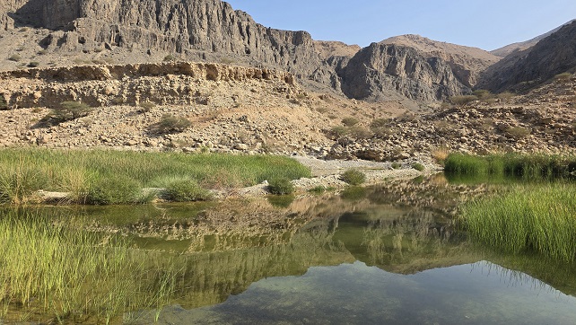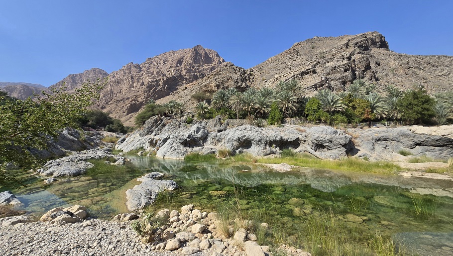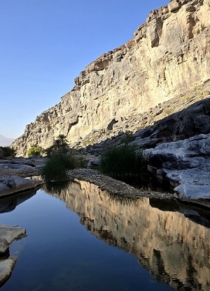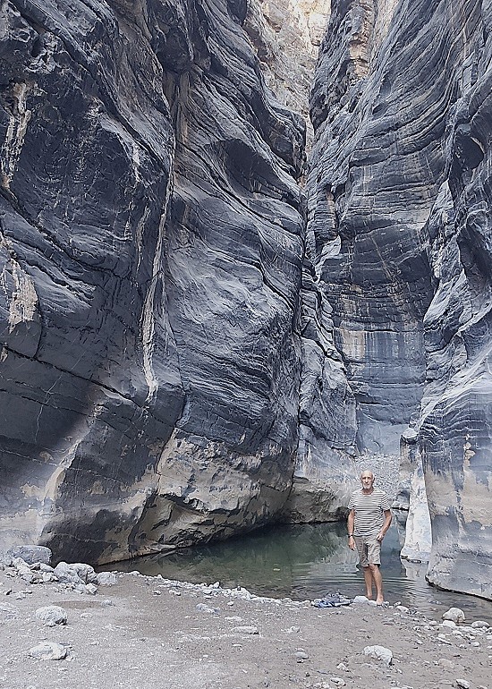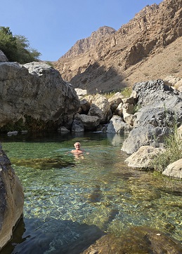 Rte 26 Wadi Al Arbiyyin autour de Dibab. Très beau circuit, pas compliqué, même si Claude dit sans arrêt : "des pentes pareilles, c'est pas possible" - "j'ai peur"...Nombreuses piscines où il fait bon se baigner.