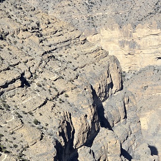 Nous empruntons un raccourci vertigineux qui nous conduit directement au Jabal Shams (rte 5), le point culminant d'Oman ( 3009 m).