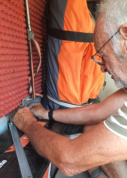 Au moment de partir, plus de batterie ! Démarrage avec le petit booster lithium (ça marche les trucs chinois à 50 balles) - arrêt un peu plus tard, merde, ça ne redémarre toujours pas - batterie Hs ? Je cherche un peu et je m'aperçois que coupe batterie moteur est sur "off"- surement un mauvais mouvement !