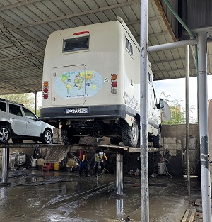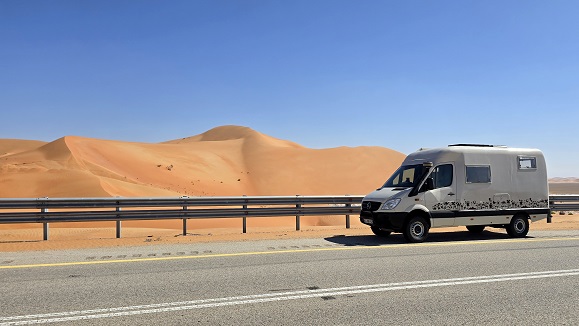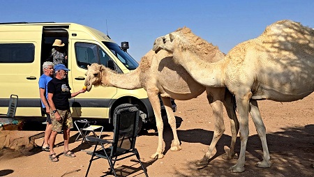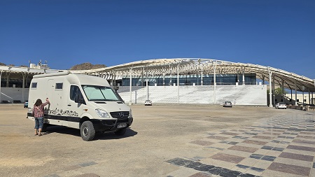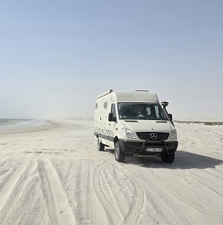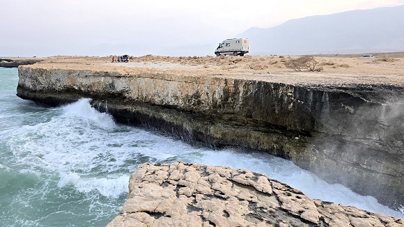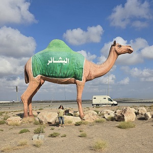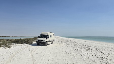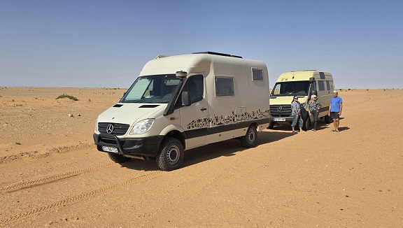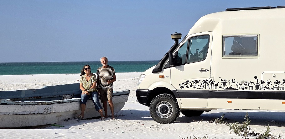 Rencontre inopinée avec "BYC tour" (Brigitte & Yvan Cassini) - on savait qu'ils étaient dans le coin. Ils arrivent d'Afrique via Salalah (Oman).