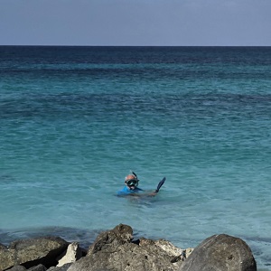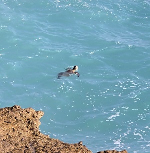 Depuis la falaise on observe les tortues malmenées par les vagues.