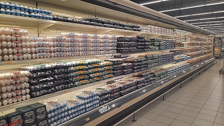 Nouvel hyper LuLu à l'entrée de Sur. Le rayon oeufs donne un aperçu du choix.