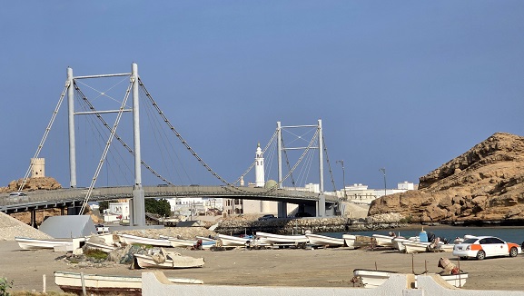 Pour rejoindre la baie et le quartier historique d'Ayjah, il suffit d'emprunter le magnifique pont suspendu qui enjambe la lagune....sauf que les "gros" véhicules (h>2,70 m) doivent faire tout le tour de la lagune, soit 12 km au lieu des 150 m !