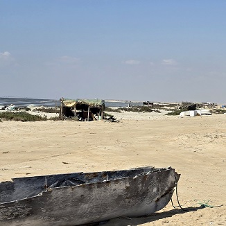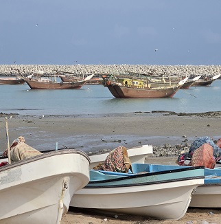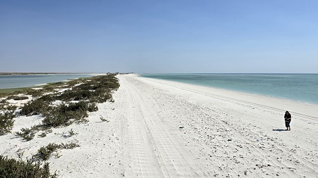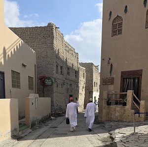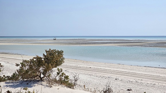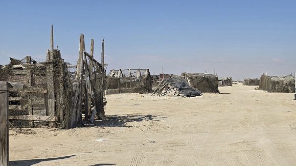 Nous rejoignons Hiji puis le "village" de Filim qui se trouve au milieu d'une zone côtière peu profonde - pas grand chose à voir, mais à quelques kilomètres, le village de pêcheurs désaffecté d'Al Ghadhin avec ses maisons en "barasti" (feuilles de palmier) donne une idée de l'habitat traditionnel typique de la région.