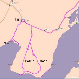 En remontant par la piste, nous pensions trouver une piste pour rejoindre le désert de Barr Al Hikman, mais nous ne trouvons pas de jonction ; nous remontons donc jusqu'à Hiji où nous faisons quelques courses au supermarché et puisque nous sommes la nous décidons descendre jusqu'à Al Khaluf et les "Sugar Dunes"- le désert attendra !