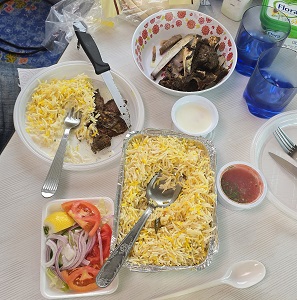Resto : hors d'œuvre + riz biryani / poulet ( 2,50 € / pers) - quelques courses et "parking" du château pour un repos bien mérité...