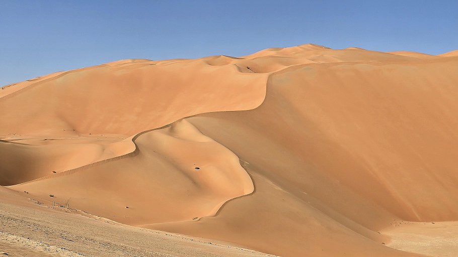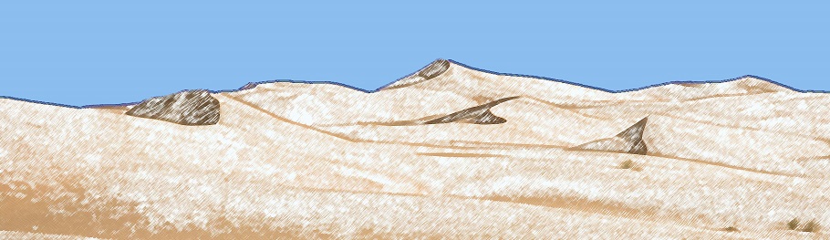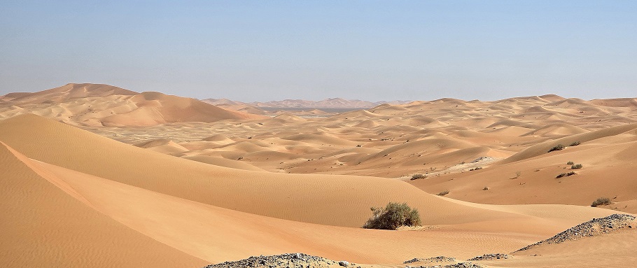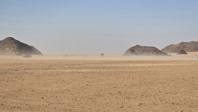 Toujours un ciel d'un bleu profond, mais ce matin le thermomètre est descendu à 6°. Après plus de 100 km de "reg" absolument plat, nous traversons une belle zone dunaire puis attaquons la montagne.