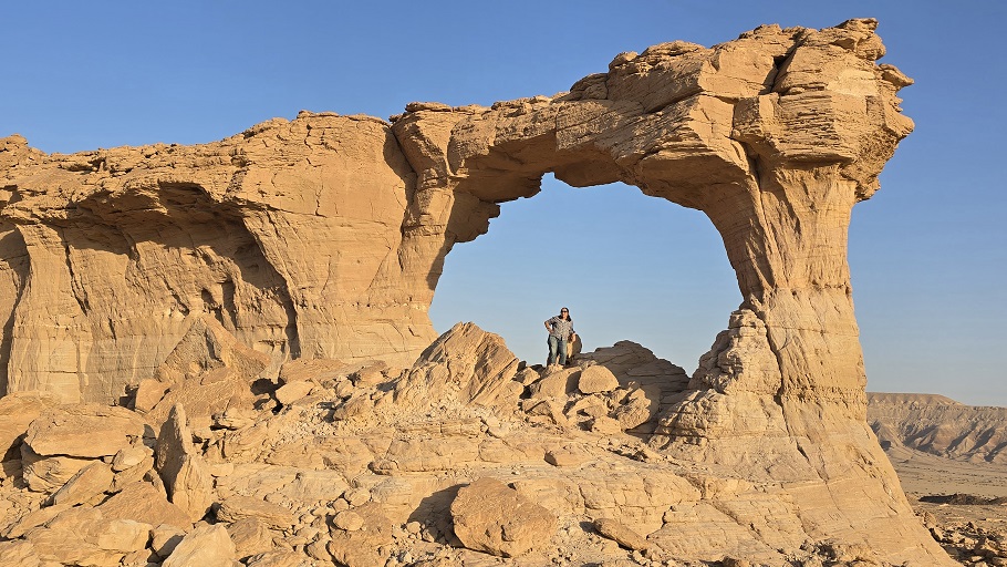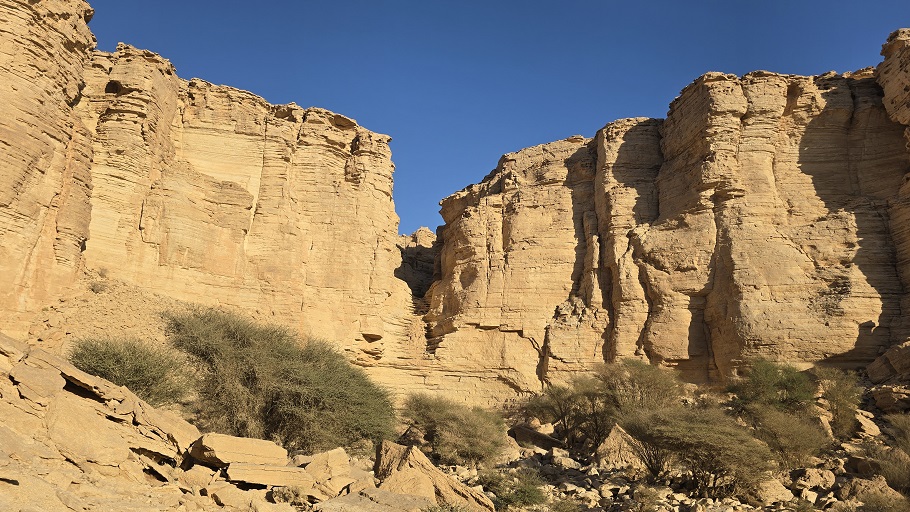 Encore une demi heure de grimpette et nous voila au pied de la falaise au bout de laquelle se trouve Makhrouq Arch.