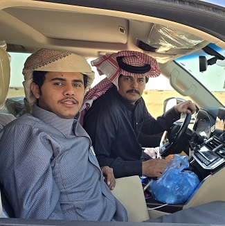 On croise Françoise et Alain Morel, nos amis de Nîmes qui remontent vers le nord pour "chercher" des gravures. Après avoir pris rendez-vous pour demain, nous continuons vers le sud en direction de Makhrouq Arch. Des saoudiens en profite pour s'arrêter et me demandent que je les prennent en photo ....pourquoi pas !!!