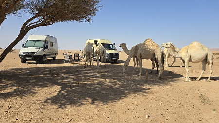 Les éleveurs de chameaux ont troqué la khaïma pour des immenses caravanes. Les camions citerne, toujours présents, servent aussi bien à abreuver les bêtes qu'à tracter les mobile homes lors des migrations.