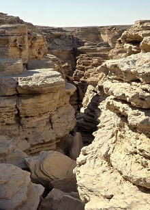 Quelques kilomètres de piste pour aller jusqu'à Al Hadatr canyon - peu d'eau à cette période, juste une guelta que malgré nos efforts nous n'arriverons pas à atteindre - trop de grosses dalles encombrent le canyon !