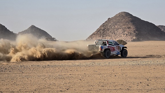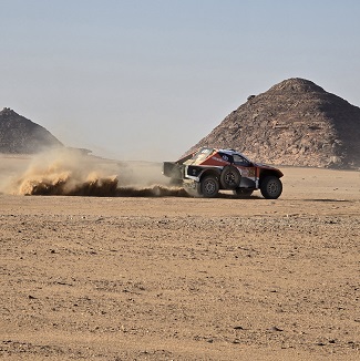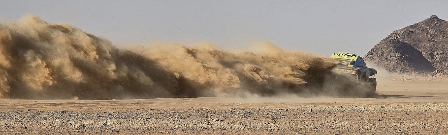Nous allons bivouaquer à l'arrivée de la spéciale (point donné par l'organisation) qui conduit les coureurs de Riyad à WaD - dommage, le terrain est plat et roulant, ce qui rend le spot inintéressant ! Après un passage au bivouac du Dakar, nous rejoignons l'arrivée de la boucle ( 770 km) autour de WaD - le site est magnifique, mais le vent qui souffle en rafales réduit la visibilité.