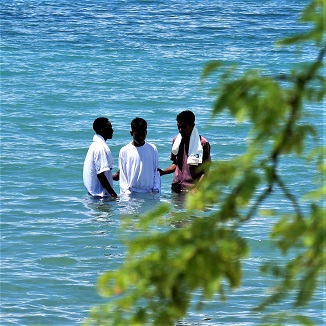Ici, on ne badine pas avec la religion, pendant que certains se purifient dans la mer, les élèves de écoles catholiques fond leur chemin de croix - chants, prières et sermons !