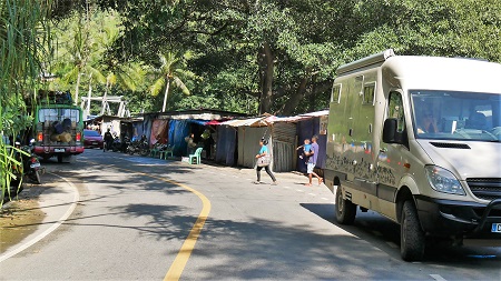 Retour à Dili. Nicolas nous confirme que le douanes portuaires de Dili veulent un cachet d'entrée sur le CPD pour réexporter le Sprinter ! Nous profitons du week-end pour retourner à la frontière située à 120 km de Dili. Belle route, circulation faible, et malgré quelques éboulements et rochers sur la route, nous arrivons rapidement à la frontière.